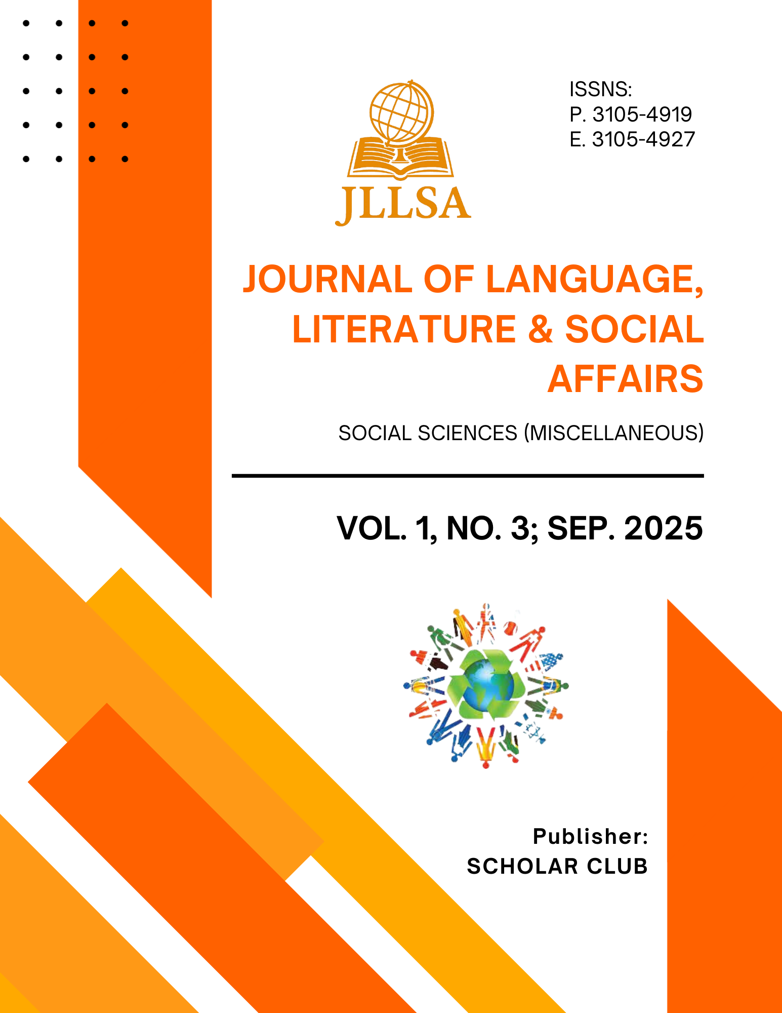 The Journal of Language, Literature & Social Affairs (JLLSA) is a quarterly, double-blind peer-reviewed academic journal published by the Scholar Club (Global Research Community). Dedicated to fostering impactful research, JLLSA aims to enrich society by advancing scholarly inquiry across the domains of language, literature, and social sciences. With a broad interdisciplinary scope, the journal welcomes both qualitative and quantitative research that addresses contemporary societal issues through diverse methodologies such as discourse analysis, ethnography, textual studies, and survey research. Upholding values of academic integrity, innovation, and inclusivity, JLLSA provides a vibrant platform for scholars, educators, and researchers to contribute original insights spanning a wide range of fields including linguistics, cultural studies, education, sociology, political science, and beyond.